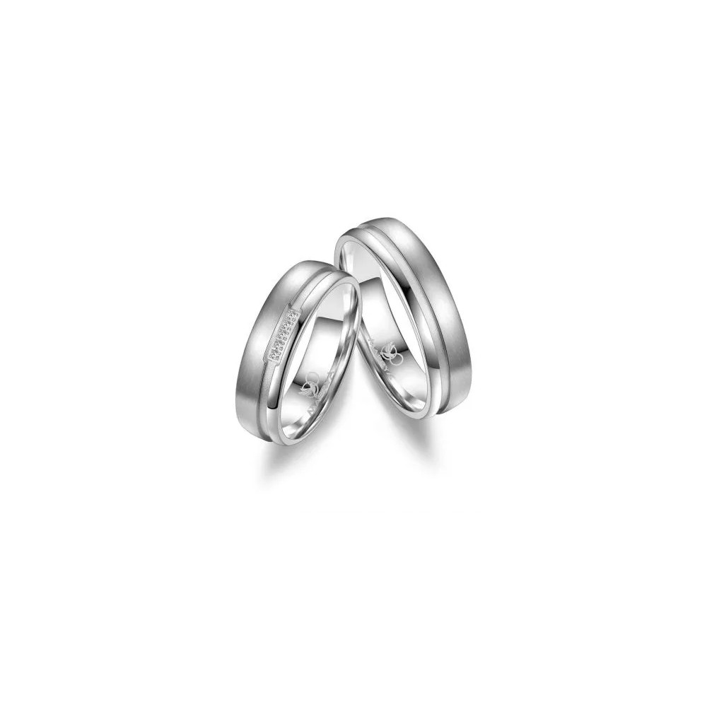 Alianzas en plata de primera ley rodiadas, en mate y brillo y circonitas en el modelo de señora.
