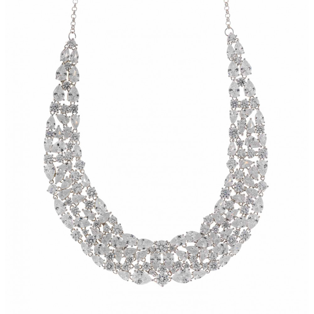 Gargantillas de plata de plata de primera ley rodiada, con circonitas blancas, cierre demosquetón y un largo de entre 40 y 45 cm.