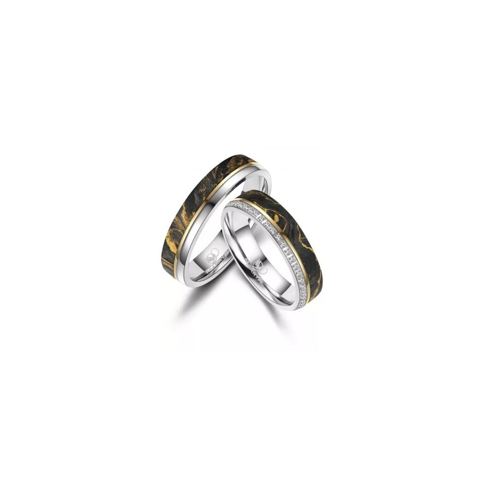 Edición especial de alianzas de señora y caballero en fibra de carbono y titanio.