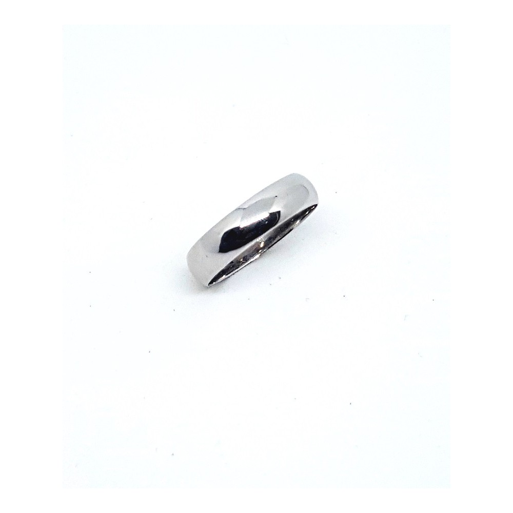 Alianza de oro blanco en acabado brillo, con forma de mediacaña, un ancho de 4.5 mm y un grosor de 1.1 mm, con posibilidad de hacer en cualquier acabado, mate, brillo, efecto hielo, cualquier ancho, grosor o color del oro, amarillo, blanco o rosa. El precio dependerá de la cotización diaria del oro y del tamaño de la alianza, puede consultarlo a través de nuestro correo consultas@joyeriamili.com.