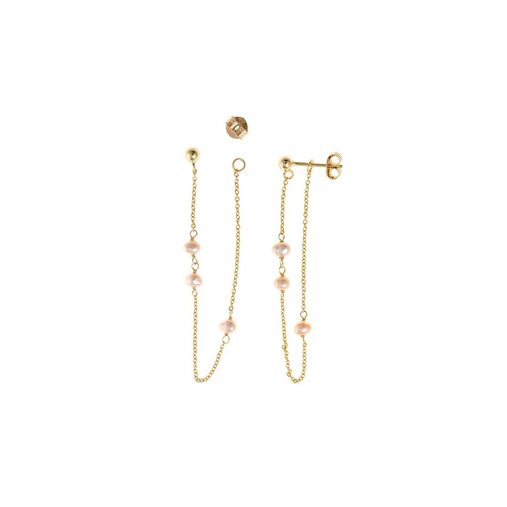 Pendientes de plata de primera ley chapados en oro de 18 kilates, perlas de rio y cierres de presión.