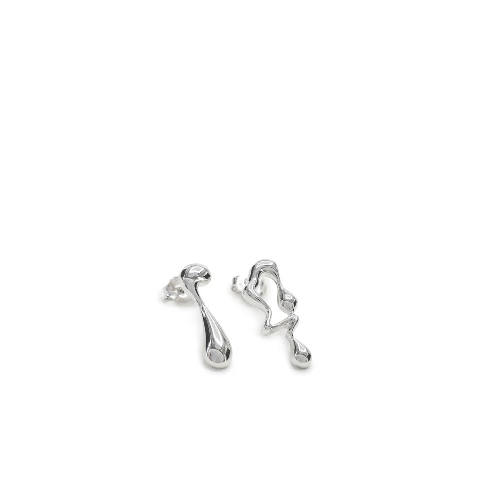 Pendientes de plata de primera ley rodiada, lisos con cierres de presión.