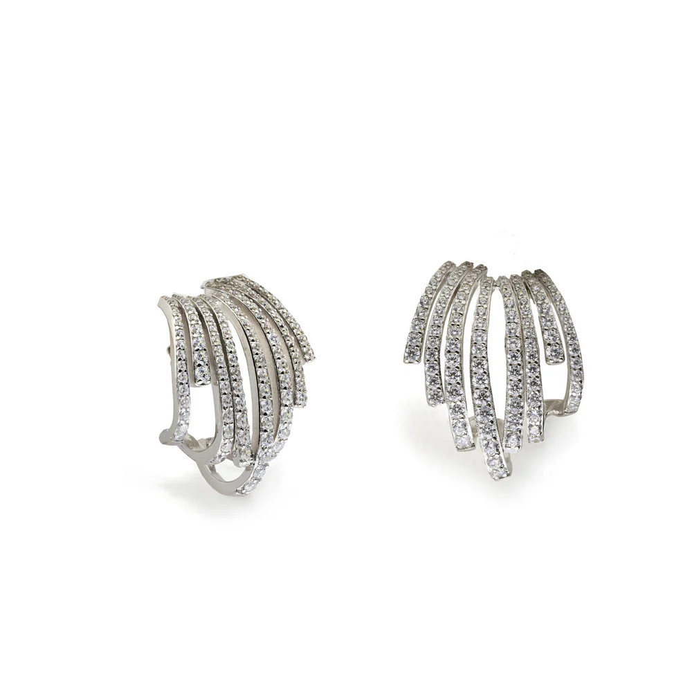 Pendientes de plata de primera ley rodiada con circonitas blancas, y cierres de presión.