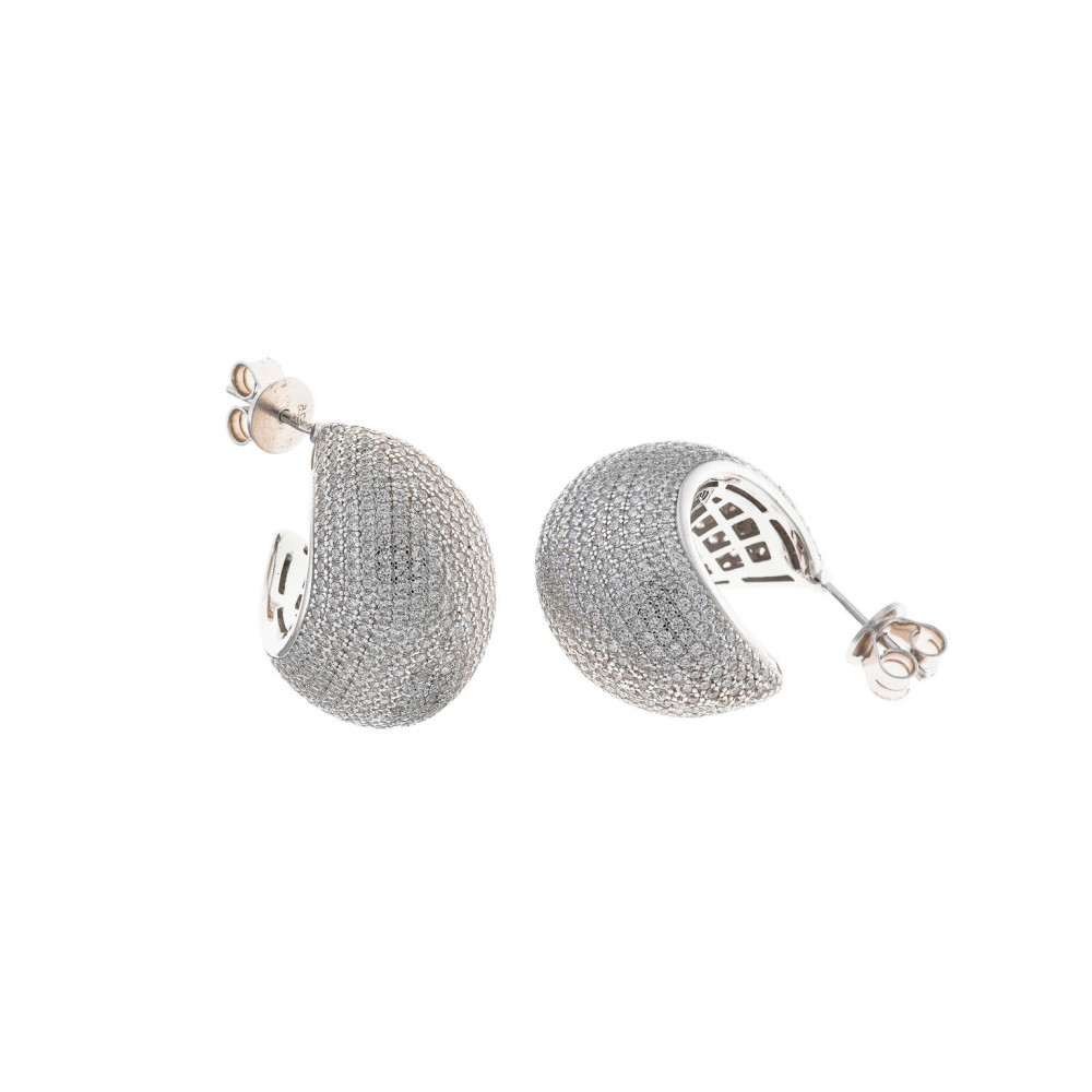 Pendientes en plata de primera ley rodiada, con circonitas blancas y cierres de presión.
