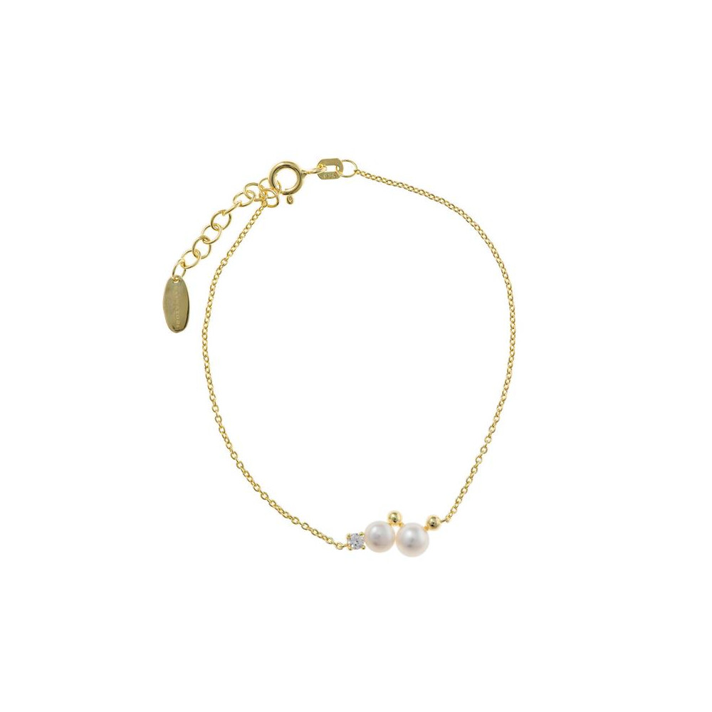 Pulsera de plata de primera ley chapada en oro de 18 kilates y perlas de rio.